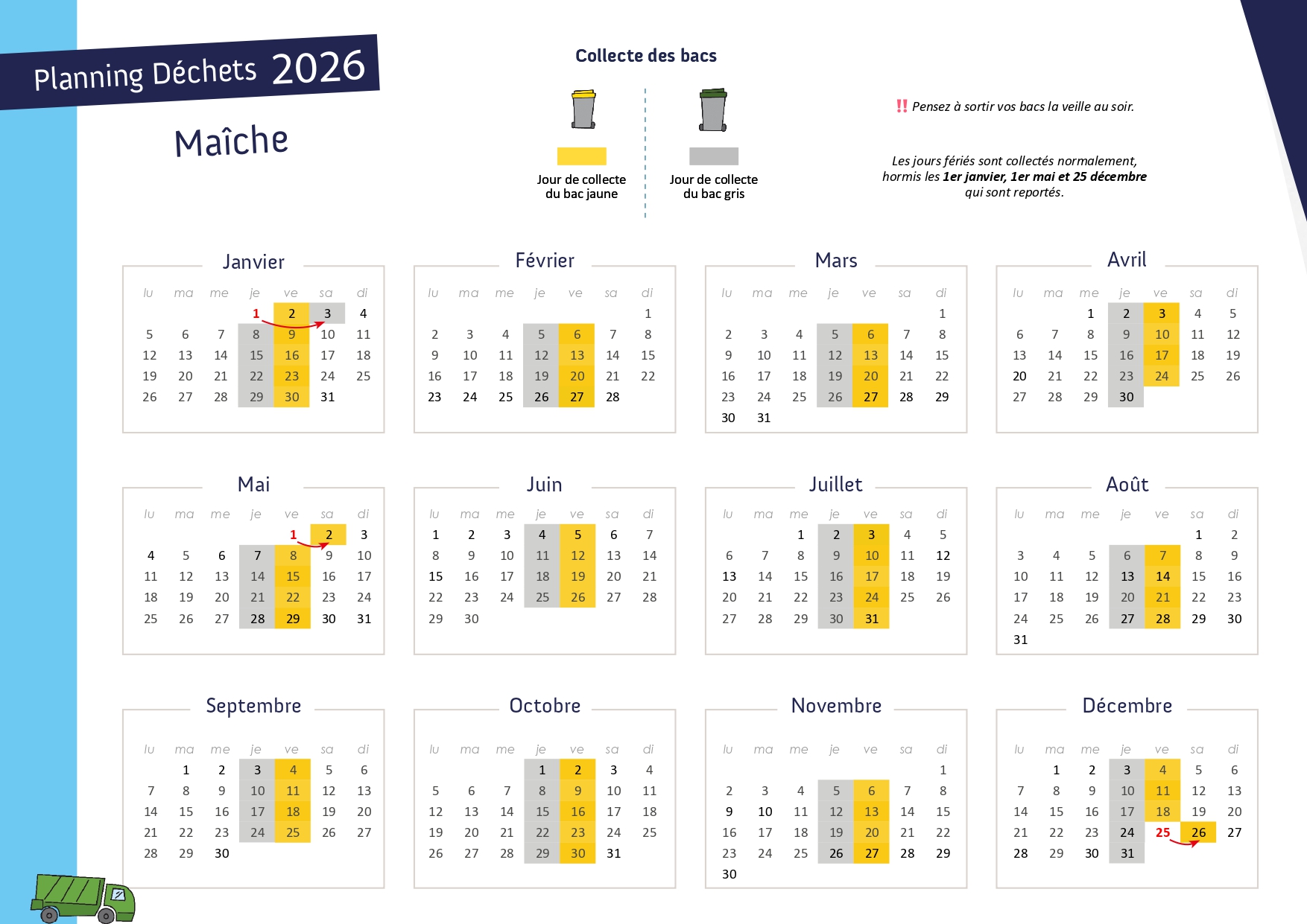 Si vous résidez à l’écart du centre-bourg, et que vous n’êtes pas collectés avec le « gros camion » sur les tournées classiques, nous vous invitons à vous renseigner auprès du service Environnement de la CCPM au 03 81 64 17 06